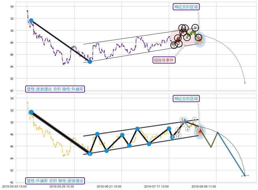 ➣ 波浪理论:猜想击穿破位c点后继续下跌 → 下跌 → 风险信号 → 小趋势跟踪