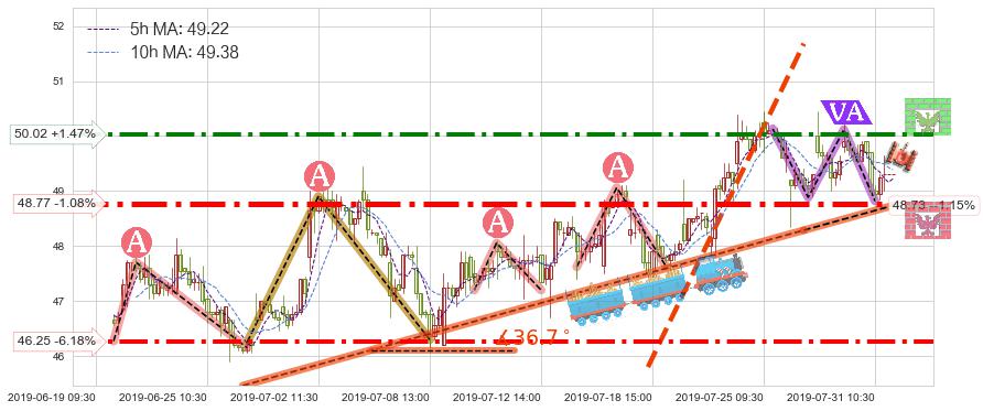 ➢ 预测:2019-08-02 11:00,【小幅回撤】稳定目前上涨趋势的前提下,预测价格:48.91