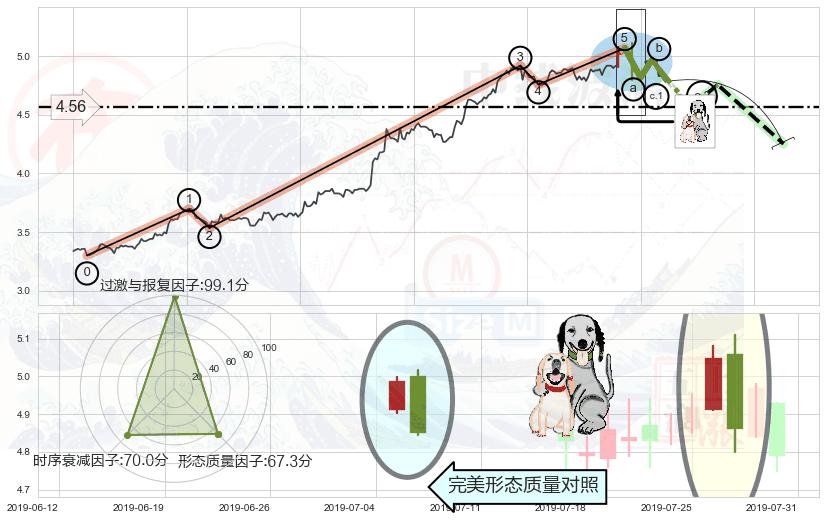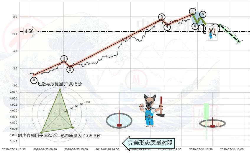 ➢ 🕰 价格走势在2019-07-29 00:00:00至2019-07-31 00:00:00期间形成空方炮,残存影响值:-0.54