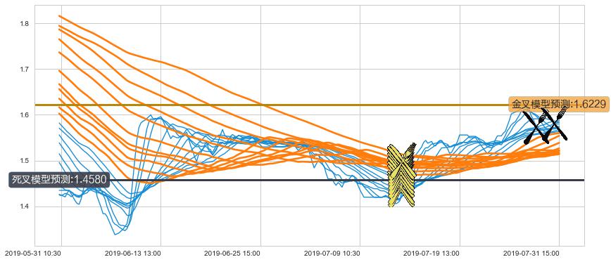 ➣ 34小时均线于(07-31 11:30: 1.5794)形成【死叉】基于【死叉历史模型】预测死叉后最低波谷价格: 1.4585, 死叉后最低价格1.5800,已经下跌超出预测最低波谷价格, 预期反弹