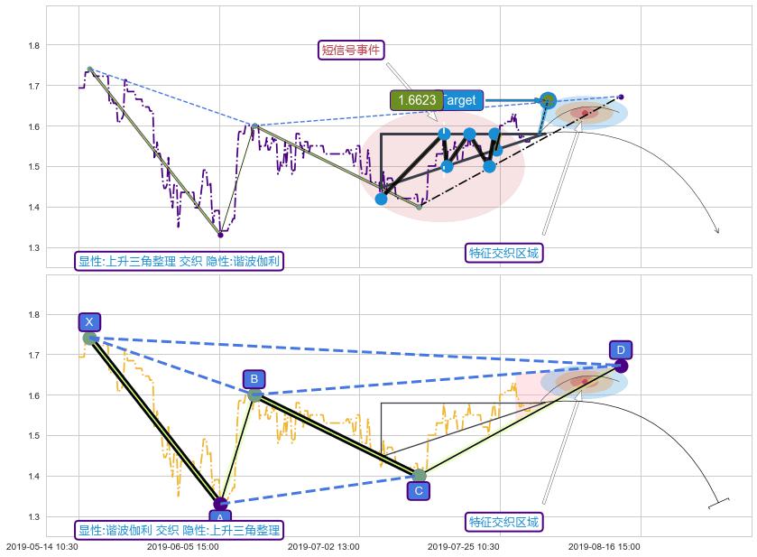 ➢ 上升三角整理属【短级别信号事件】谐波伽利属【长级别信号事件】长短周期组合信号事件, 短长事件长度比26.79%
