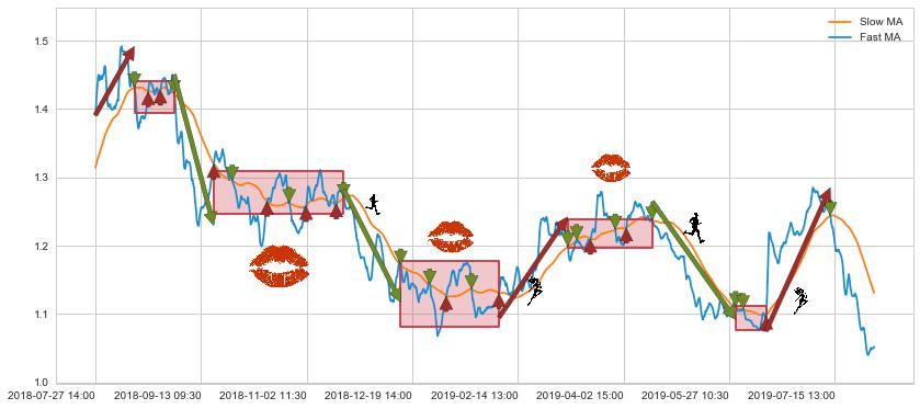 05-29 10:30至06-12 15:00 慢线与快线多次接触,存在上下穿越,有缠绕