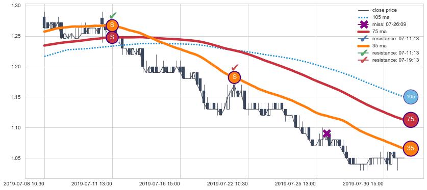 📝 多条均线形成死叉后走势最低价格达到: 1.0400