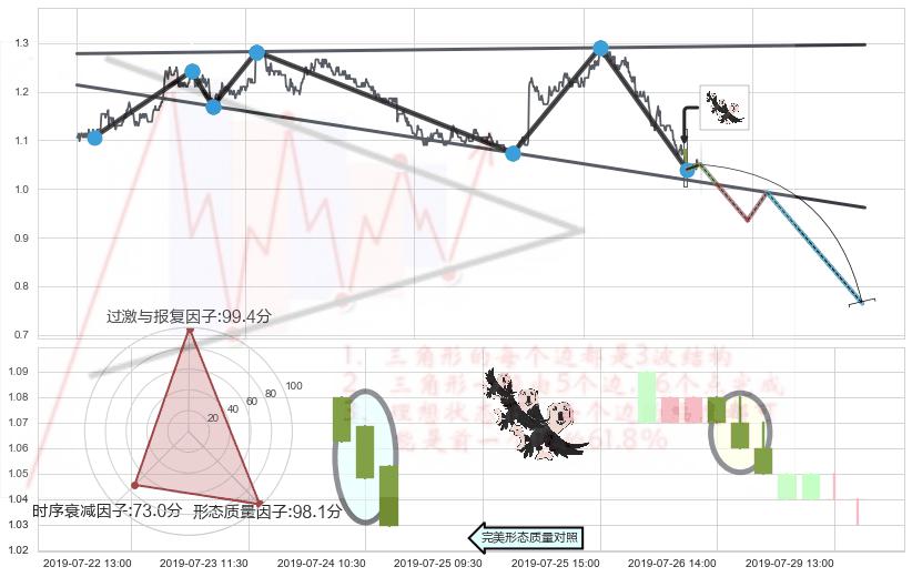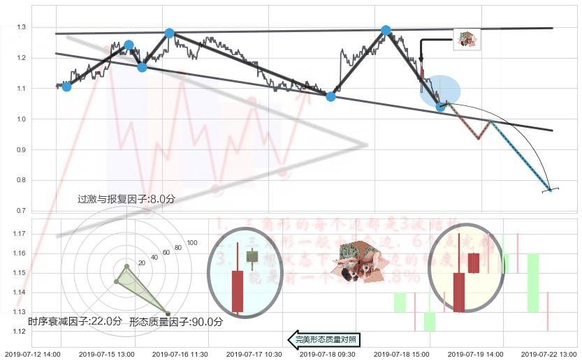 ➢ 🕰 价格走势在2019-07-19 10:30:00至2019-07-19 11:30:00期间形成顶部尽头线(下山虎),残存影响值:-1.84