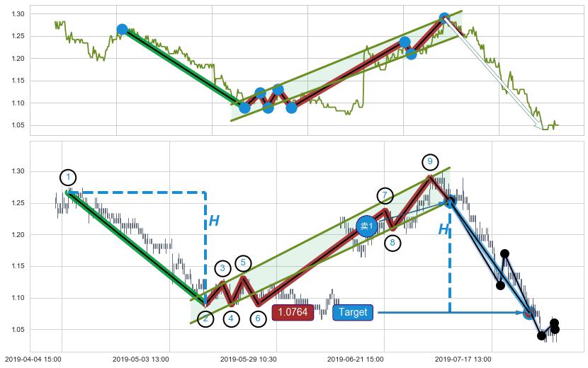 ➣ 最小中继整理跌幅→𝐇: 0.176000 (𝐇旗杆的长度:旗杆起点→顶点)