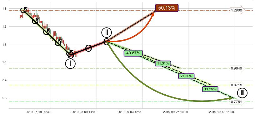 ➢ 高概率大级别循环下跌浪被破坏,反转向上(突破5浪起点)概率50.13%