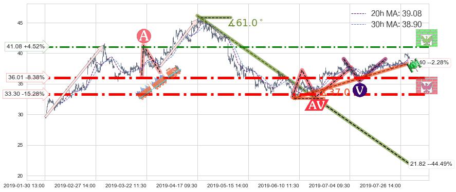 ♘ 支撑价格位36.01,可信任强度92.47%,距离最后交易2019-07-31 15:00形成的收盘价格39.30相差 -8.38%