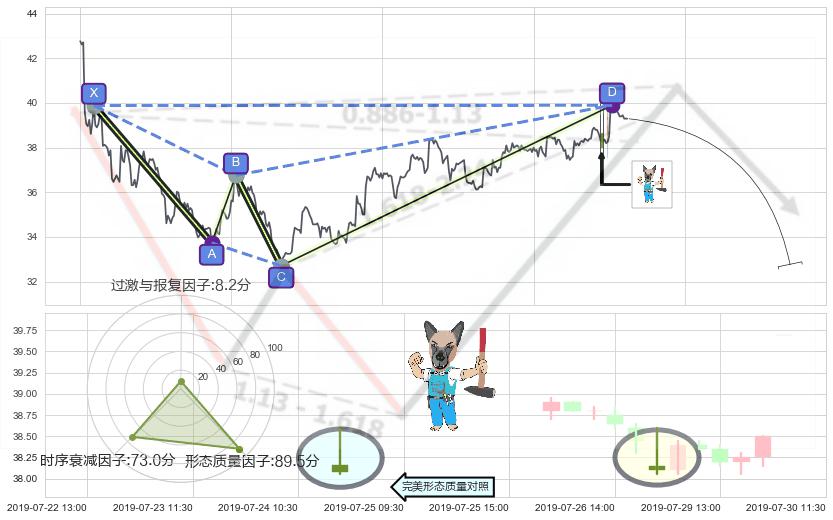 ➢ 谐波鲨鱼:已到达d点:猜想c拉升到达d点后泄力性下沉下跌(均值回复)