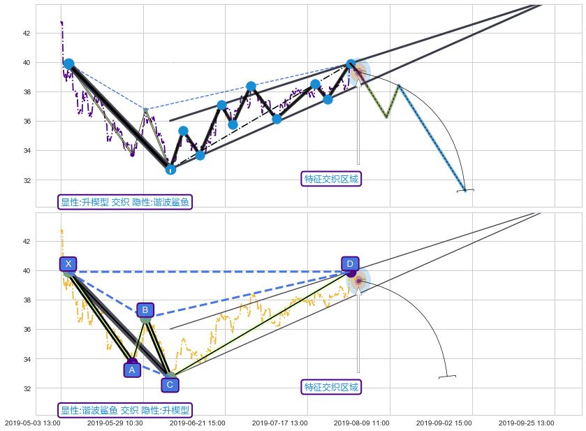 ➢ 升楔型与谐波鲨鱼信号事件周期长度级别相同,同周期信号事件