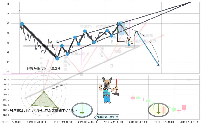 ➢ 🕰 价格走势在2019-07-22 11:30:00至2019-07-23 09:30:00期间形成高档五阴线,残存影响值:-0.92