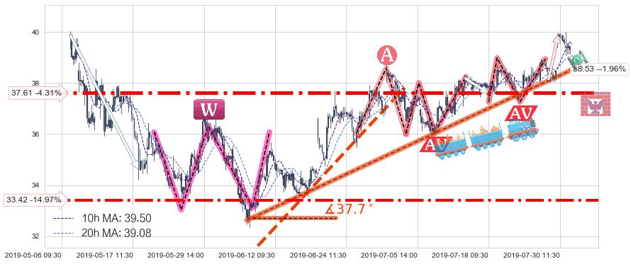♘ 支撑价格位37.61,可信任强度96.32%,距离最后交易2019-07-31 15:00形成的收盘价格39.30相差 -4.31%