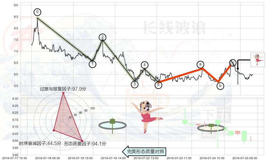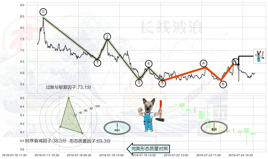 ➢ 🕰 价格走势在2019-07-24 09:30:00至2019-07-24 10:30:00期间形成底部尽头线(上山虎),残存影响值:6.27