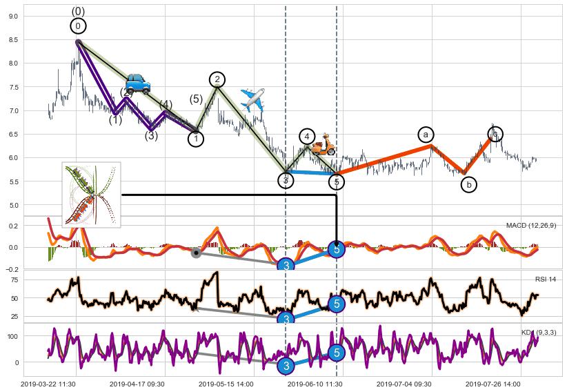 ➢ 波浪理论:猜想击穿突破c点后继续上涨 → 上涨 → 机会信号 → 小趋势跟踪