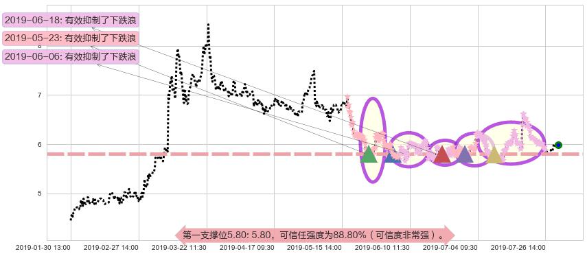 ♘ 支撑价格位5.80,可信任强度88.80%,距离最后交易2019-07-31 15:00形成的收盘价格5.98相差 -3.05%