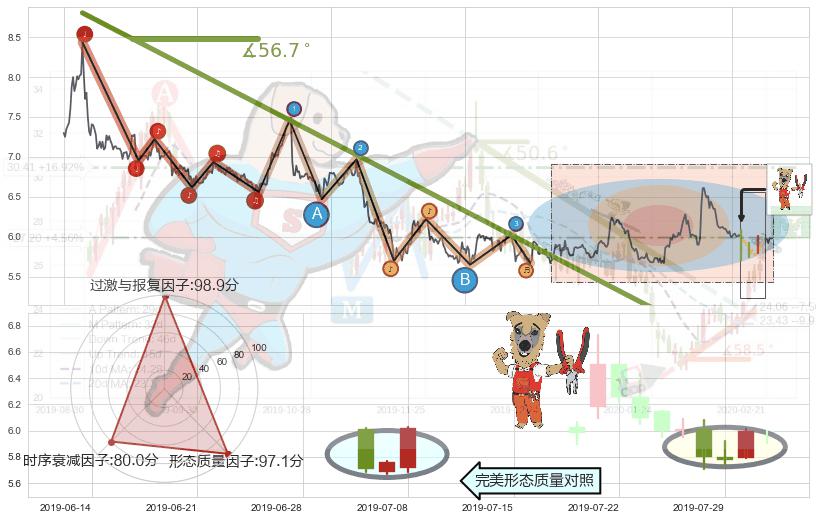 ➢ 2019-03-22 15:00-2019-06-24 15:00下跌趋势存在反转上涨[机会],其原下跌趋势的阻力位(4.33)已被突破[强支撑信号],原下跌趋势角度: 56.7˚