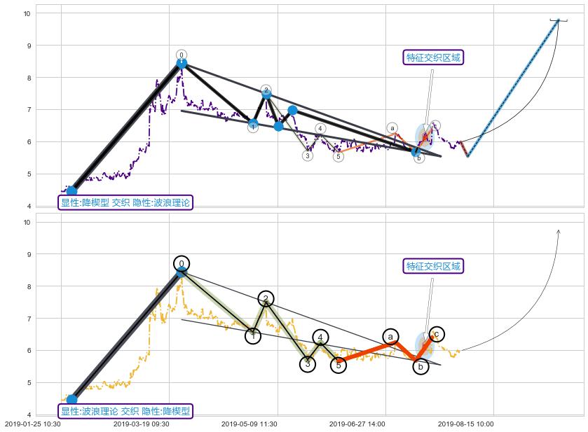 ➣ 波浪理论:猜想击穿突破c点后继续上涨 → 上涨 → 机会信号 → 小趋势跟踪