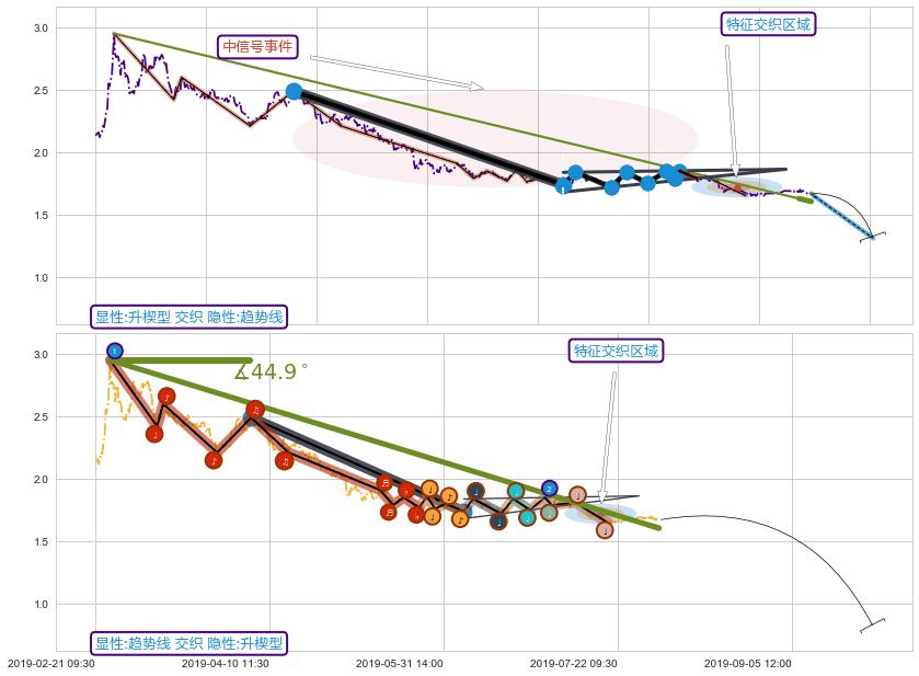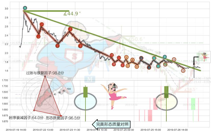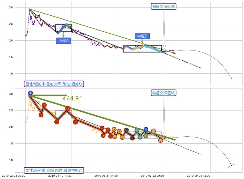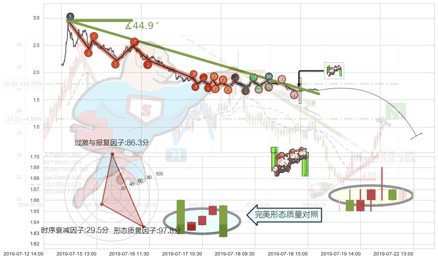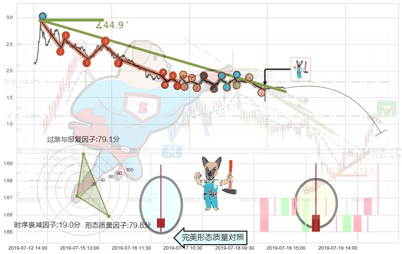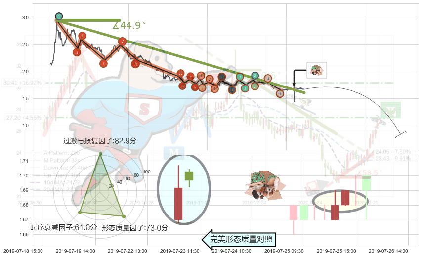 从2019-02-25 15:00至2019-07-30 09:30,共包含620个小时,阶段股价下跌-52.35%,阶段股价变动位移路程比: 1 : 9,下跌趋势角度: 44.9