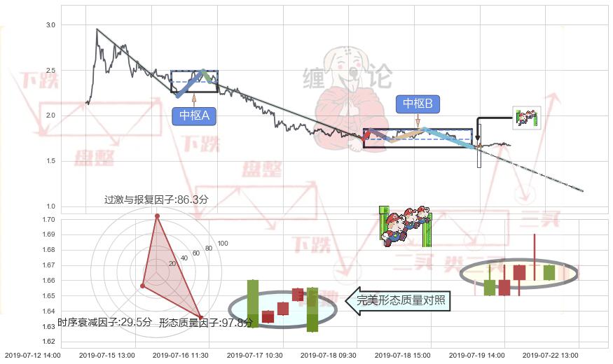 ➣ 缠论中枢点:猜想破位中枢B后持续下拉 → 下跌 → 破位中枢B支撑 → 持续趋势跟踪