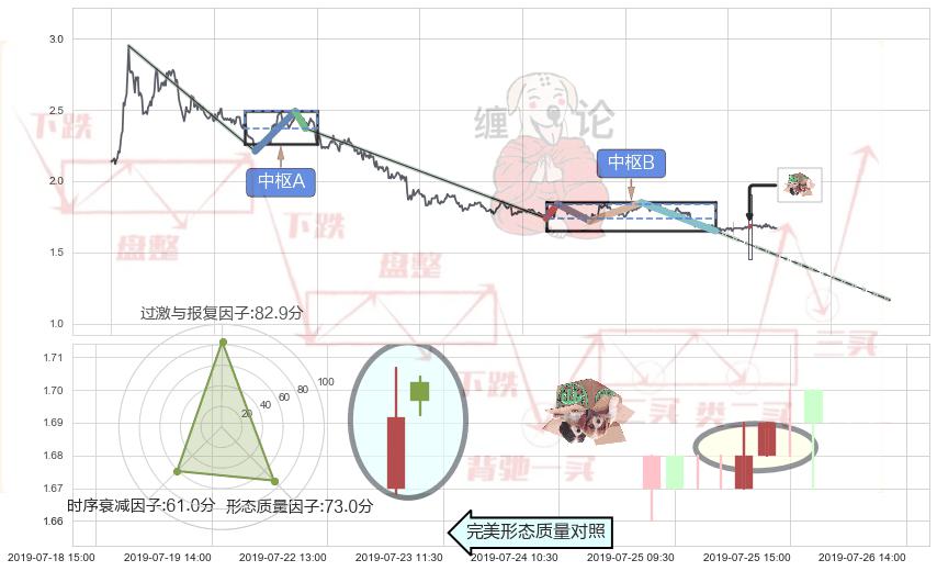 ➣ 顶部尽头线(下山虎) + 缠论中枢点破位中枢B支撑下拉信号叠加后【信号初始稳固度】中等,【看空】信号叠加【可信度影响中等】