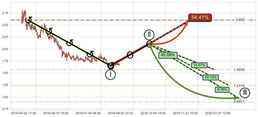 ➢ 高概率大级别循环下跌浪被破坏,反转向上(突破5浪起点)概率54.41%