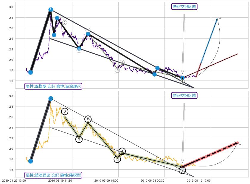 ➢ 降楔型与波浪理论信号事件周期长度级别相同,同周期信号事件