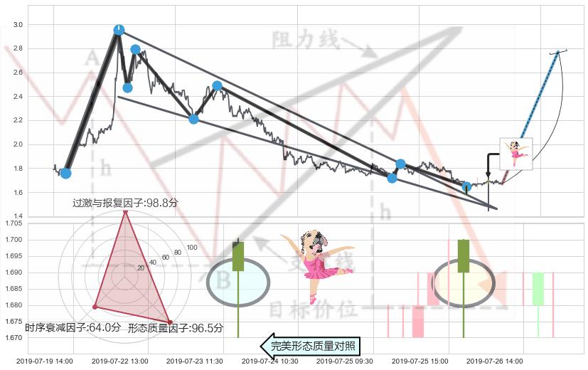 ♘ 在最后的下跌阶段2019-02-25 15:00至2019-07-30 09:30,存在 破位边缘的阻力位 ,阻力价格1.6051,可信任强度80.74%,其距离最后价格1.6700相差 -3.89%