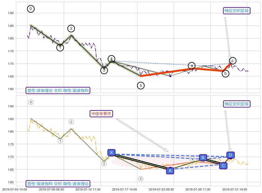 ➢ 趋势线属【短级别信号事件】波浪理论属【长级别信号事件】长短周期组合信号事件, 短长事件长度比15.79%