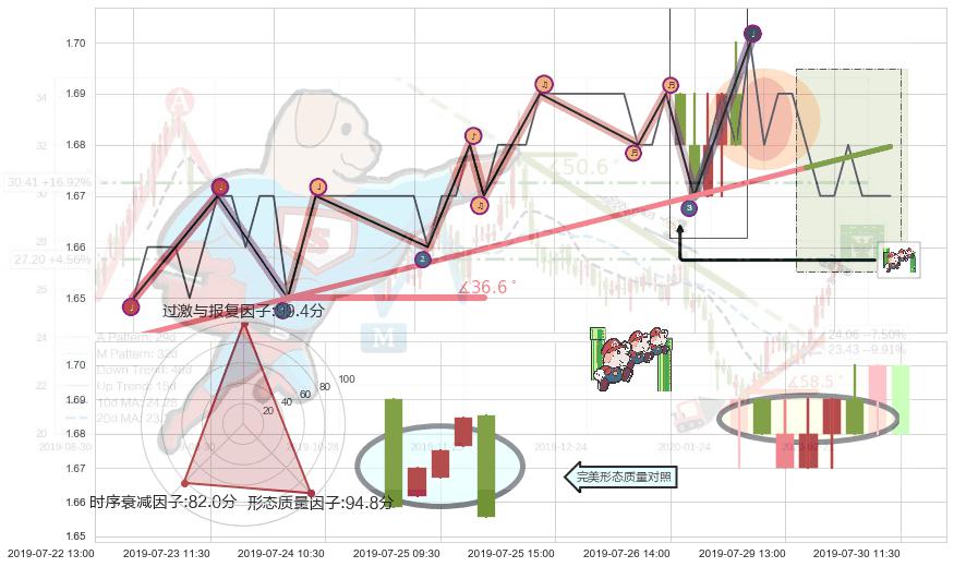 从2019-07-18 15:00至2019-07-30 15:00,共包含49个小时,阶段股价上涨1.86%,阶段股价变动位移路程比: 1 : 9,上涨趋势角度: 36.6