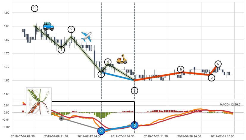 ➢ 趋势线属【短级别信号事件】缠论中枢点属【长级别信号事件】长短周期组合信号事件, 短长事件长度比14.69%