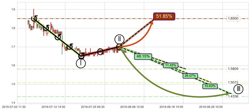 ➢ 循环浪继续向下【最高】位置(08-19:11, 1.5809),匹配聚类样本比例23.78%, 可能性概率11.45%