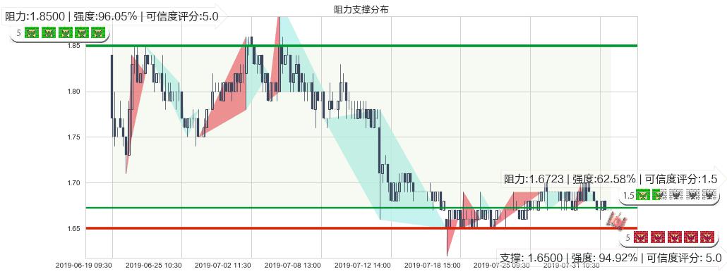♘ 阻力价格位1.8500,可信任强度96.05%,距离最后交易2019-07-31 15:00形成的收盘价格1.6700相差 +10.78%