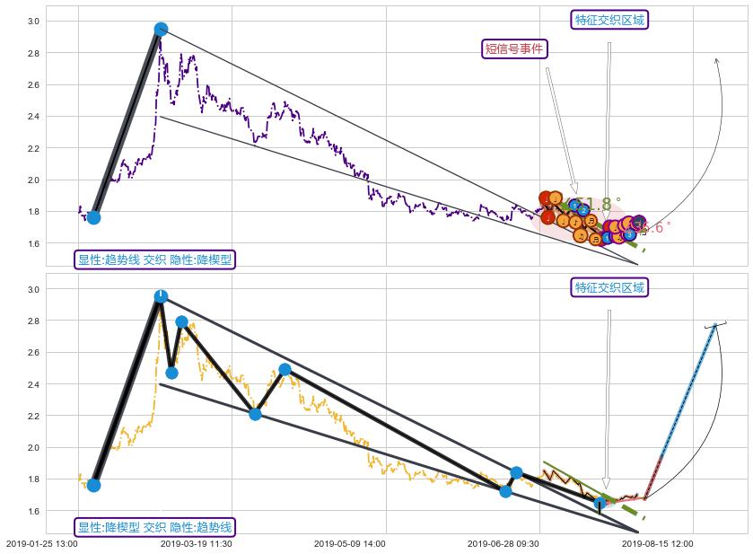 ➢ 趋势线属【短级别信号事件】降楔型属【长级别信号事件】长短周期组合信号事件, 短长事件长度比13.66%