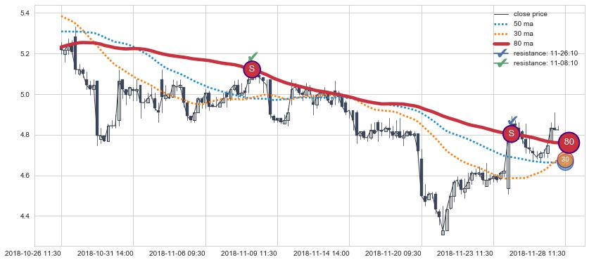 ➣ 历史趋势中共发现19处重要支撑阻力位,其中关键支撑位6处, 关键阻力位13处