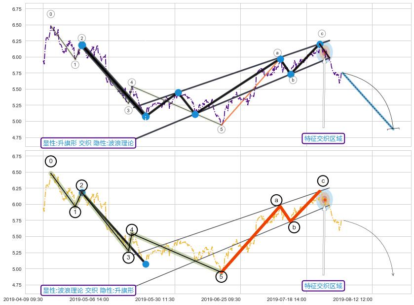 ➣ ['回调abc识别为: 【锯齿型调整浪】 ', '锯齿型:子浪535结构 ⓑ点振幅较小,ⓒ点继续发力远超ⓐ点结束位置']