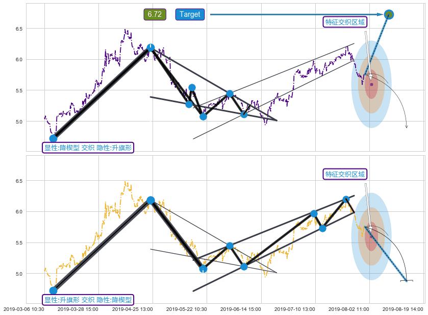 ➣ D点拟合预测价格7.03,距离最后交易收盘价格5.75相差 +22.26%
