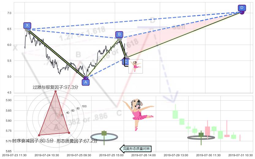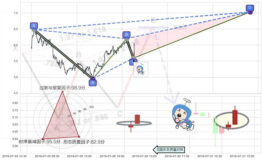 ➢ 🕰 价格走势在2019-07-31 11:30:00至2019-07-31 13:00:00期间形成上涨螺旋桨形态,残存影响值:8.33