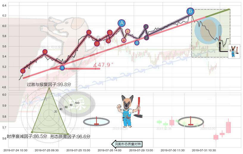 ➢ 2019-06-19 09:30-2019-07-26 13:00上升趋势存在反转[风险],其原上升趋势的支撑位(6.33)已破位[强阻力信号],原上升趋势角度: 47.9˚