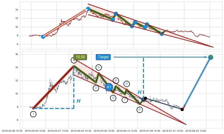 ➢ 最小中继整理涨幅→𝐇: 6.45 (𝐇楔型旗杆的长度:楔型起点→顶点)