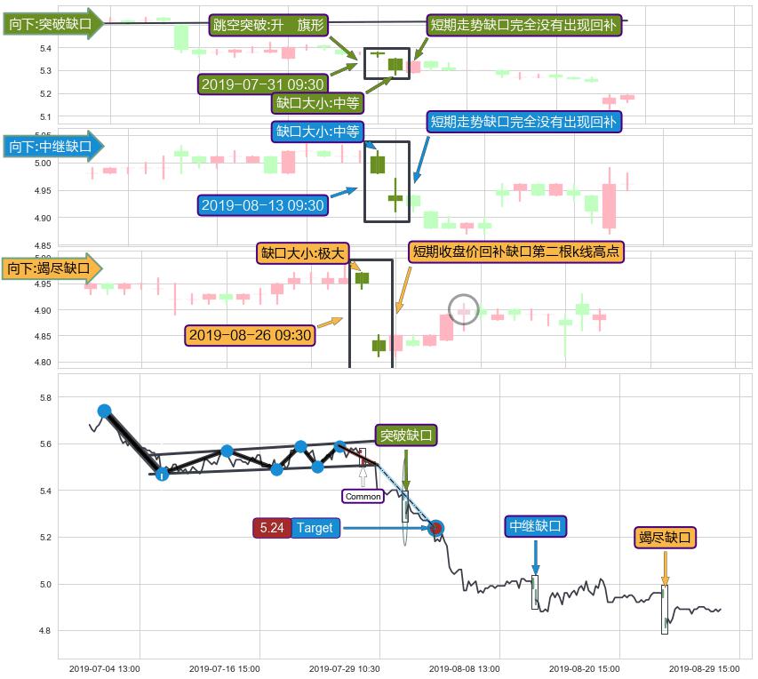 ➢ 2019-08-26 09:30形成:向下跳空【竭尽】缺口