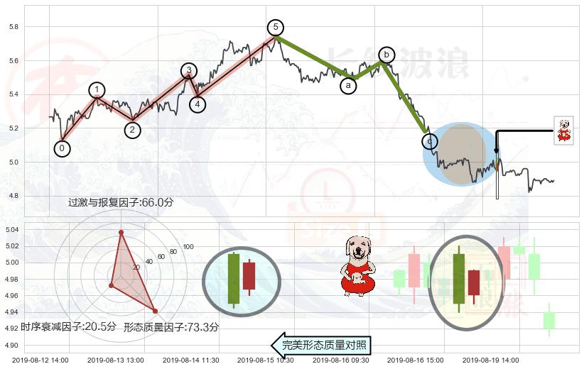 ➢ ['回调abc识别为: 【锯齿型调整浪】 ', '锯齿型:子浪535结构 ⓑ点振幅较小,ⓒ点继续发力远超ⓐ点结束位置']