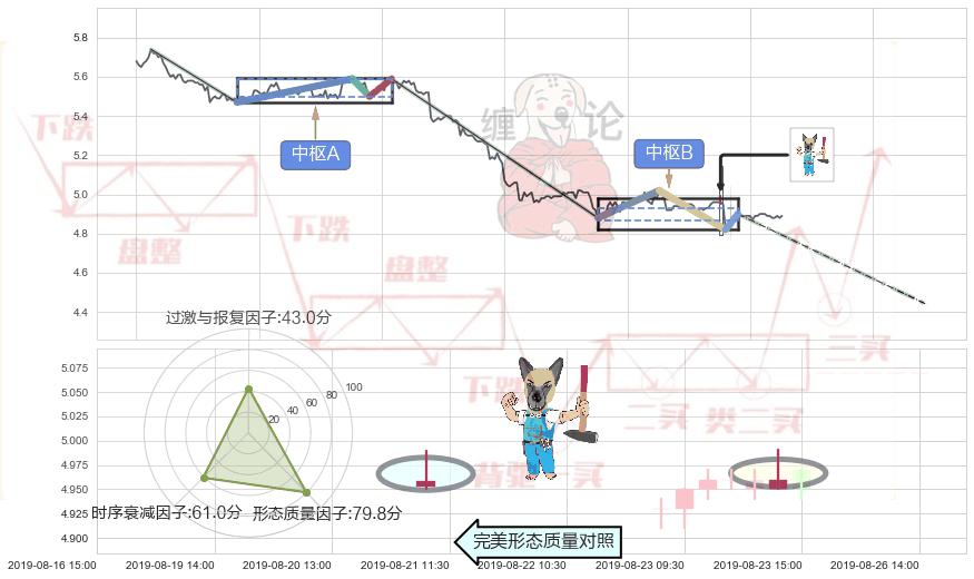 从2019-08-07 09:30至2019-08-26 09:30,共包含79个小时,阶段股价下跌-2.76%,阶段股价变动位移路程比: 1 : 9