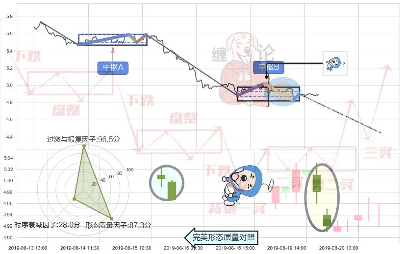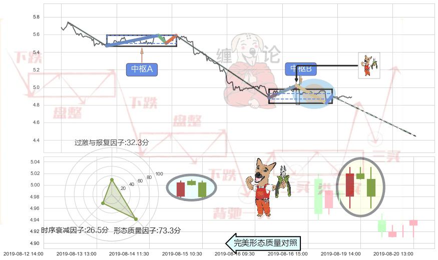 ➢ 🕰 价格走势在2019-08-19 15:00:00至2019-08-20 09:30:00期间形成下跌螺旋桨,残存影响值:-4.85