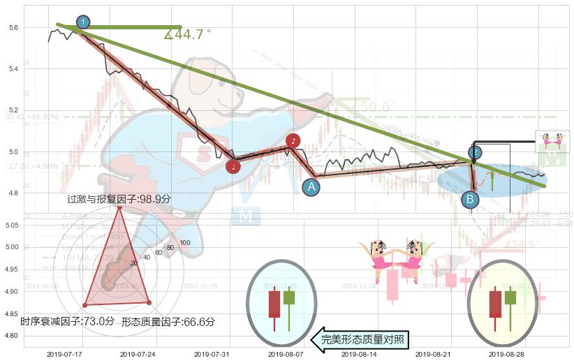 从2019-07-24 11:30至2019-08-27 14:00,共包含147个小时,阶段股价下跌-13.16%,阶段股价变动位移路程比: 1 : 3,下跌趋势角度: 44.7