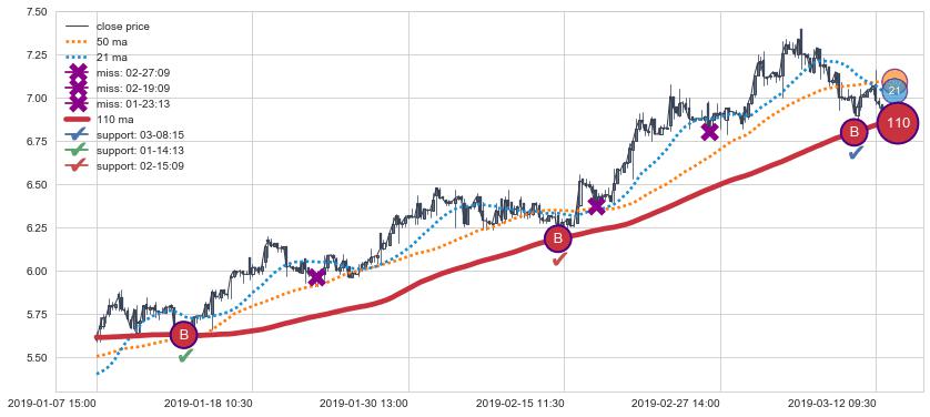 ➢ 最优均线组合共正确确认支撑阻力信号11处,正确确认率 64.71%