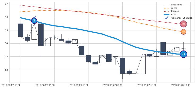 📝 多条均线形成死叉后走势最低价格达到: 6.74