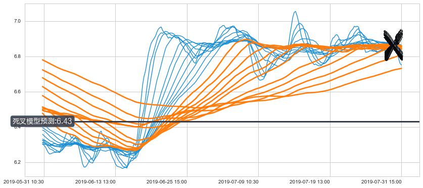 ➣ 40小时均线于(07-30 15:00: 6.87)形成【死叉】基于【死叉历史模型】预测死叉后最低波谷价格: 6.47, 死叉后最低价格6.74,尚未达到预测最低波谷价格, 预期继续下跌