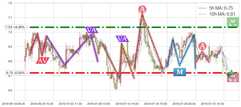 ♘ 阻力价格位7.03,可信任强度99.90%,距离最后交易2019-07-31 15:00形成的收盘价格6.74相差 +4.35%