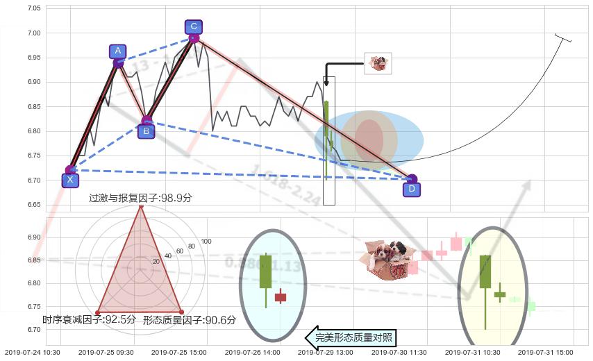 ➢ 🕰 价格走势在2019-07-31 09:30:00至2019-07-31 10:30:00期间形成底部尽头线(上山虎),残存影响值:8.22
