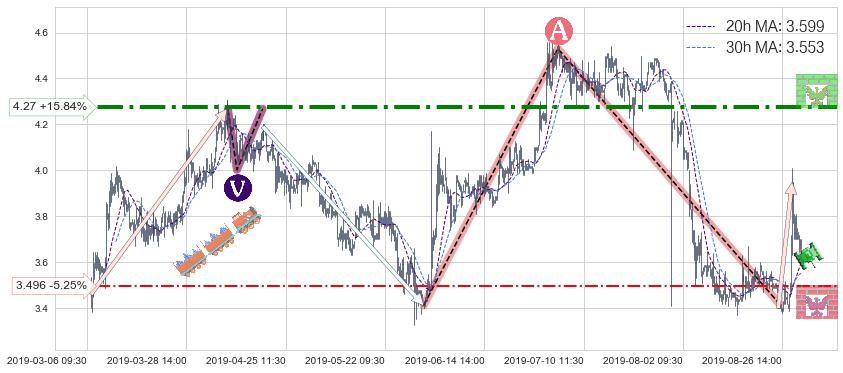 ♘ 阻力价格位4.27,可信任强度77.02%,距离最后交易2019-08-29 15:00形成的收盘价格3.690相差 +15.84%
