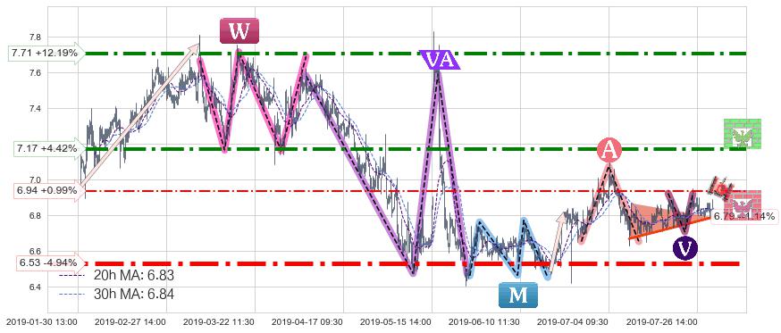 ♘ 支撑价格位6.94,可信任强度52.40%,距离最后交易2019-07-31 15:00形成的收盘价格6.87相差 +0.99%